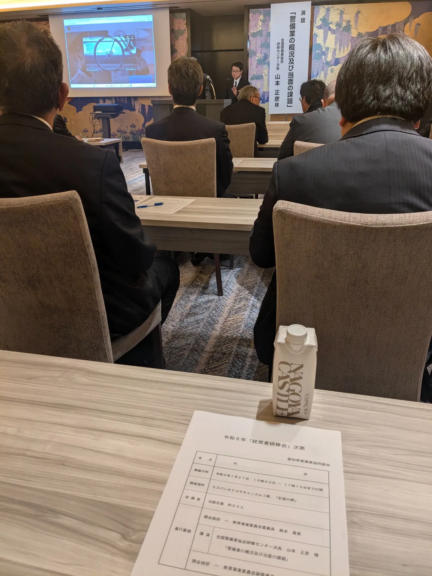1月27日火曜日、愛知県警備業協同組合の経営者研修会及び新年会に参加しました。